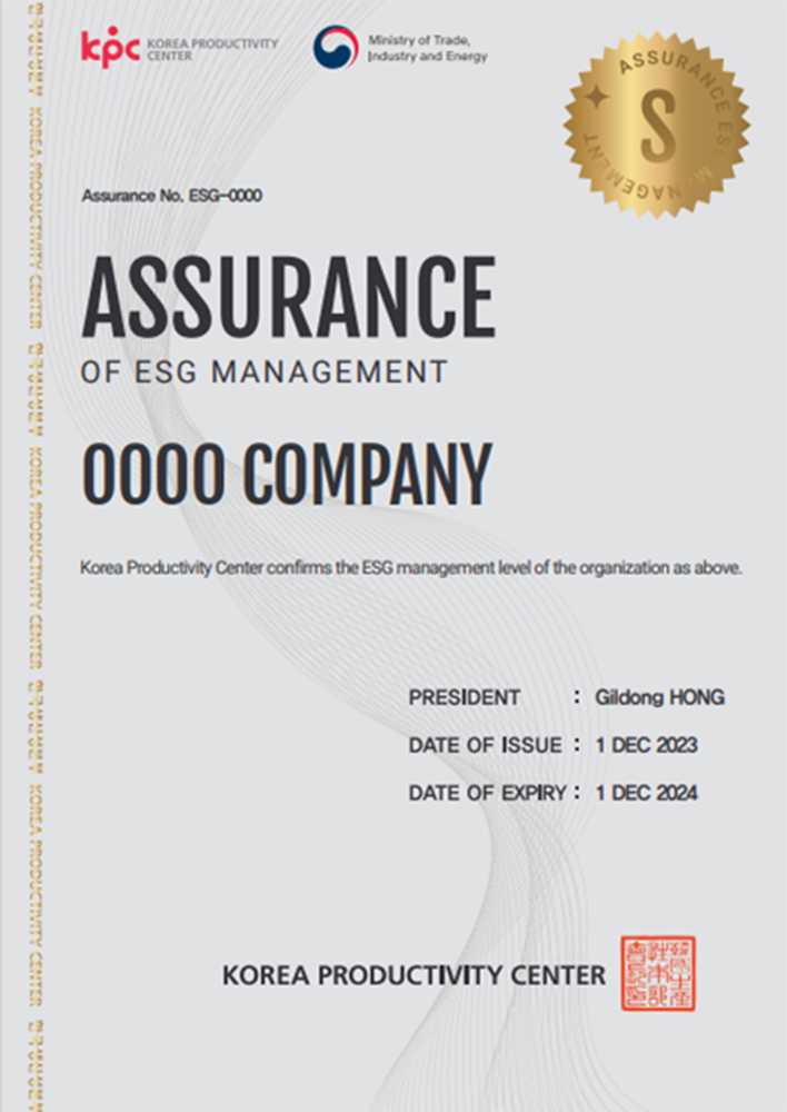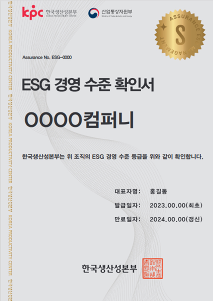 (“ESG 경영수준 확인서” 발급)
